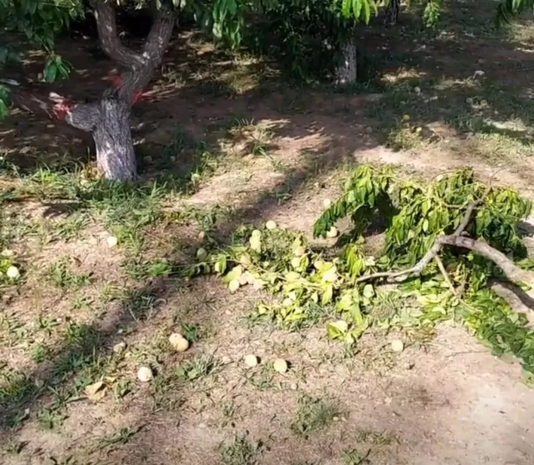 折断的树枝、掉落满地的绿桃子等“满目疮痍”的景象实在是不堪入目。