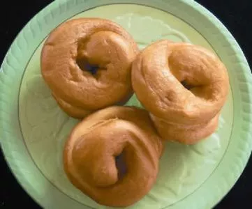 羊盘缠、果子 宁夏 • 银川 • 灵武 羊盘缠、果子同油香、馓子一样,同是回族穆斯林喜爱的传统食品。羊盘缠又称“油圈子”,在炸油香的时候,可以同时用油香面炸羊盘缠、炸果子。羊盘缠的制作很简单,仅是把面盘成一个手镯大小的面圈,放入油锅内慢慢翻炸,等油渗透色成深红后捞出锅。这样炸出的羊盘缠外表油亮光滑,内里油渗渗、酥软软的,吃起来非常可口;果子的制作稍复杂一些,先要将面团作成叶瓣形状,然后放入油锅,炸的时间比油香、馓子、羊盘缠都要长些,直到将叶瓣炸干后捞出油锅。吃起来咯巴干脆是果子的一大特色,果子炸好后存放的时间要比油香、羊盘缠长。