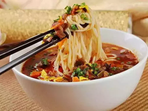 羊肉臊子面 宁夏 • 石嘴山 • 惠农 羊肉臊子面是宁夏著名的传统面食,是回族传统风味食品,汤宽面爽,咸辣味香。在石嘴山的大街小巷,大大小小的饭馆里,都会有羊肉臊子面。据说羊肉臊子面是由唐朝初期的“长寿面”演化而来,成为老人寿辰、小孩生日及其他节日的待客佳品,含“福寿延年”之意。在这个假期,玩累了,随便走进街边饭馆,要碗羊肉臊子面,那味道真是没得说! ( 石嘴山)