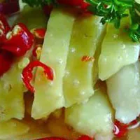吴忠白水鸡 宁夏 • 吴忠 • 同心 用老汤(即经常煮白水鸡的汤)加清水,还有调料包,把母鸡放入锅内,先用旺火烧开,再用文火慢炖。待鸡肉煮熟(以能用筷子扎进鸡肉为宜),捞出晾凉,再取鸡油抹遍全身,使鸡皮发亮。吃时将熟鸡带骨剁成5厘米方块,码在盘里,配上三花油一小碟上桌。看上去色泽黄亮,闻起来清香扑鼻,吃起来味道醇厚,鲜嫩爽口。此菜尤以吴忠一带选料考究,制作精细,颇享盛名,故名“吴忠白水鸡”。( 银川)