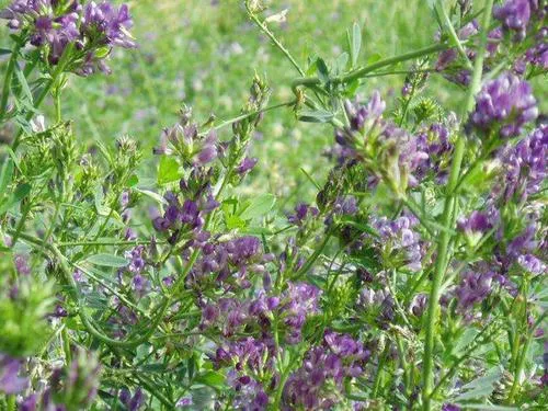 和田大叶紫花苜蓿的营养价值很高,粗蛋白、维生素和矿质含量丰富,蛋白质的氨基酸组成比较齐全,动物必须的氨基酸含量高,适应性好,各种家畜喜食,嫩苜蓿可以做为畜禽良好的蛋白质,维生素补充料。