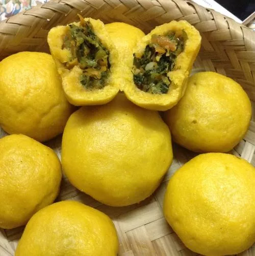 一般来说,一斤面够做三个菜团子。菜团子就着咸菜、腌菜、稀饭吃特别香。