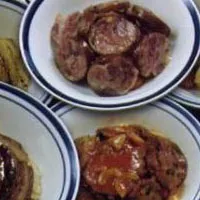 是蔚县的传统名肴,顾名思义,八大碗即指席上的主要菜肴数量,一般为丝子杂烩、炒肉、酌蒸肉、虎皮丸子、块子杂烩、浑煎鸡、清蒸丸子、银丝肚等八类。八大碗有荤有素,烹饪精细,鲜美可口,是当地宴宾会客的名肴。