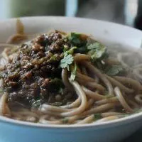 荞面河漏是北方面食三绝之一,与北京抻面、山西刀削面齐名。锅中把水烧沸,河漏订子漏放在锅沿上,和好荞面填进订子漏内,然后加压,荞面从漏底许多小眼0来落在锅中沸水里,熟后捞出盛碗,浇卤汁,吃起来滑润筋道,饶有风味。