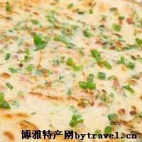以猪板油和葱切碎拌匀为馅,包入面皮后擀成旗墩形圆饼,放鏊上烙烤而成。色泽金黄,层多,焦脆香嫩。
