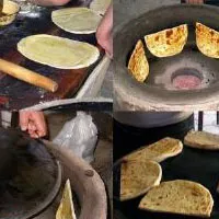 油锄片的原料为白面10公斤,禾油0.75公斤,碱面0.1公斤,蘑合、茴香少许,食盐适量。制作油锄片,首先要“酵面引”,酵面也就是引子。酵面引又称为“起子”、“酵头”。制“起子”先把面和匀,放在盆里,置于暖热处发酵。和面时要掌握好水温,一般是冬热夏冷,春秋温和。“起子”发好后,再和死面团,然后把死面兑在“起子”里,反复的揉,直到揉匀为止。“起子”与死面的比例为“起子”40%,死面57%。面和好后,放盆中“醒”会儿,接着制酥面,酥面中加3%的白面,加0.2公斤黄芥油,上锅炒成黑红色,再放入蘑合、盐,拌匀即为酥面。一切准备就绪后,取出面团,读光、揉筋,擀成05公分厚的长形面块。把制好的酥面擦上、卷起、切块,擀三大剂三小剂子,包时大剂在外,小剂在内,各蘸三次禾油、盐、蘑合,然后和成圆形,用刀旋出丝来,并将圆饼坯一切为二,一个宽二十公分、长二十七公分椭圆形锄片坯即做好了。做好后,正反两面油,即可上炉。把铁鏊放火上,鏊上洒少许清油;将饼逐个放入铁鏊内,鏊下的火力要分布均匀,散在四周。等到底面发黄时,逐个翻过,用文火慢慢烘烤,烤到火色均匀,饼面微鼓时,移入火膛边缘烘烤,约三分钟后即熟。