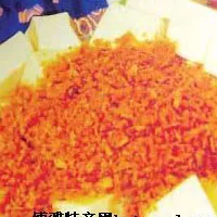 素食豆酥豆腐 山西 • 忻州 • 五台 材料∶嫩豆腐(盒装)/半块。 调味∶豆酥。 做法∶ 1.先将豆腐切成小正方置磁盘,入蒸笼,或电锅蒸约5分钟。 2.锅内擦乾小火炒香豆酥,置於(1)的豆腐上即可。 贝叶莲心∶ 1.豆酥加油炒会较酥较香,也较不易焦,但相对的,身材就要付出一些代价。 2.这道菜变化的食材相当多,如∶菇类、高丽菜切大块蒸熟,豆皮、豆包、南瓜、马铃薯蒸熟再洒上炒香的豆酥。 3.豆酥就是豆酥鳕鱼上的豆酥,黄豆发酵後制成,味道咸咸甘甘的,很下饭,在一般传统杂货店,或台南水交社市场,丽都戏院市场内皆有卖。