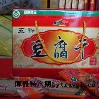 广灵五香腐干 山西 • 大同 • 广灵 五香豆腐干以太行高寒地区黄豆为原料,采用科学配方,运用先进设备,结合纯天然“乳酸菌”点制的传统工艺精制而成。五香豆腐干具有精、韧、咸、香等特点,营养丰富,口味纯正,精韧耐嚼,富含植物高蛋白氨基酸及高钙质和多种微量元素,是居家旅游、酬宾宴客、馈赠亲友、休闲佐餐的无糖素食佳品。