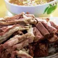 手扒肉 内蒙古 • 呼伦贝尔 • 阿荣旗 蒙古民族的传统食物中,尤以手扒肉为最具特色和代表性。手扒肉的做法是:“掏心”将羊胸腔内的动脉掐断,然后剥皮,清除内脏,并将整羊切成若干段置于锅中,待水沸后放入少许盐和葱,不加其它调料,煮断血即可。食用时一手抓肉、一手持刀片肉,其特点是肉香味美,鲜嫩异常。