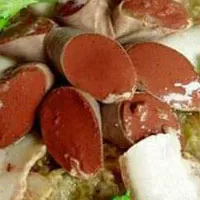 白肉酸菜血肠 辽宁 • 本溪 • 桓仁 白肉酸菜血肠是满族传统食品,普遍为各族人民所喜爱。又是城乡居民杀年猪之后,宴请亲友的一道主菜。五花猪肉,切薄片,与细切的酸菜同时加水下锅,加入调料。开锅后,再投入已灌好、煮熟、切成小段的血肠,即成一菜。此菜香而不腻,营养价值极高。