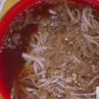 荞麦面在奈曼特有的一种制作方法。简单说就是用当地人发明的一种叫“拨面刀”即把儿刀的工具,将和好的荞麦面拨成横截面为扇形长二十公分左右的面条,清水煮后浇入当地人特制的“鲁子”,即调料就好了,“鲁子”可选用蔬菜、豆腐、肉丁等食材。此面软硬适度,筋力十足,味道鲜美,口感极佳。