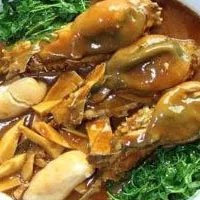 红烧河豚 江苏 • 镇江 • 扬中 原料:养殖河豚、净五花肉块、河蚌、鲜笋片、虾籽、葱结、姜片、绍酒、酱油、绵白糖、精盐、熟猪油、精制膏汤。 制作:将河豚眼睛、内脏、鳃全部去净,血水严格漂洗净至清为止。炒锅上火烧热,入油、葱结、姜片煸香,入河豚、五花肉、鲜笋片煸透后烹绍酒,入酱油、绵白糖,加入河蚌、火腿、蟹黄油、母鸡、五花肉吊制的膏汤,入虾籽、精盐,大火煮沸,小火焖透后收稠汤汁装盘。 特点:哧鲜甜,肉肥嫩,汁浓醇。