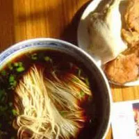 奥灶面 江苏 • 苏州 • 昆山 百年老店奥灶馆,坐落在亭林路半山桥南堍,奥灶面以红油爆鱼和白汤卤鸭面为首 红油爆鱼面:爆鱼一律用青鱼制作,面条用精白面加工成龙须面,细白柔嫩,红润喷香,食之爽口 白汤卤鸭面:则以“昆山1鸭”用老汤烹煮,故肥而不腻。一碗别具风味的奥灶面,将为您增添无穷的乐趣,留下无穷的回味 ( 昆山)