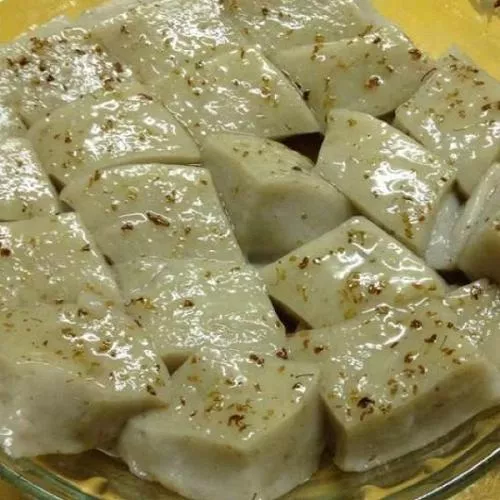 “兰花节吃兰花糕”,这是水门快餐店兰花糖糕摊老板招徕顾客的广告语 做了多年饮食生意的赖素贞心灵手巧,她会多种点心制作,但最拿手的还是她的桂花糖糕。她的桂花糖糕配方取自龙游糖糕,但又有兰溪地方特色。得知兰溪要召开兰花盛会,她马上想到了一个新的主意:干嘛不做做兰溪糖糕? 赖素贞的兰花糖糕在敷有桂花的糕面上别出心裁地用红丝、绿丝做出兰花的图案,以绿叶作陪,红花相衬,兰花糖糕一出笼,马上有顾客围上来,短短两个多小时,就卖出16笼 赖素贞说,如果顾客喜欢,兰花节后她这个兰花糖糕就作为一个品牌做下去了。发展兰溪文化,也是她一个普通市民的心愿。( 兰溪)