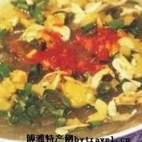 豆面碎 浙江 • 台州 • 温岭 豆面碎 假如你徜佯在紫阳街的白塔桥附近,你也会看到有一大堆人就在街头的小摊边,每人一把小凳,零乱地坐着,享受着豆面碎和面结的鲜美。把豆面浸在水里,待其发涨至发白时,再放在锅里烧煮,同时放进猪肉丸(圆)、小油泡,有时放在肉汤或鸡汤中煮,味道特好。一种用千层包裹已调好料的精肉,再用粽树叶捆扎起来,这就是“面结”。把它与豆面碎一起烧煮。如在街头或屋檐下的小摊上买上一碗豆面碎加面结,配上葱辣味精,不但鲜美香热,而且令人生出些许旧时风情,幻化出昔日的无限韵味。
