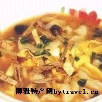 麦粉和成面糊,经充分搅拌,增加韧性。然后以筷削条入锅,条条面疙瘩跳入沸水,像虾一样在水中浮动,故以此得名。出锅后加香菇、香肠、早瓜、牛肉等佐料,汗香味浓。