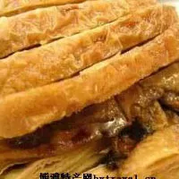 崧厦霉千张 浙江 • 绍兴 • 上虞 产品别名: 霉千层 产品名称:霉千张 产品产地:崧厦 产品简介:崧厦霉千张是绍兴市上虞县的著名特产,制作历史悠久,崧厦霉千张具有独特的风味,它以鲜洁、清香、素淡而闻名,是豆制品中的佳品。上虞崧厦镇地处曹娥江口滨海区,盛产优质黄豆;附近海边产盐,可提供上等盐卤;加之当地独特的制作工艺,故这里的霉千张品质特佳。 产品历史:早在2OO多年前就已经出名。据传清代崧厦镇有家“蔡万成水作坊”,所产的霉千张曾被皇宫誉为宫廷“奇菜”。