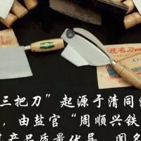 产品名称:海宁三把刀 产品产地:浙江 产品类别:工艺品 产品特性:刚柔兼备,锋利无比 产品历史:“海宁三把刀”起源于清同治四年(1835),由盐官“周顺兴铁店”创立 产品简介:以药刀、叶刀、厨刀驰名的“海宁三把刀”,尤为“手心牌”药刀最具特色,该刀刚柔兼备,锋利无比。用以切半夏,片薄如轻纱,透明照人;近年来各地药商求购药刀用以切割西洋参片,用斜切操作使小株切成大片,提高产品等级大受欢迎,最近福建一药商专程寻访“周顺兴”的“手心牌”药刀,一口气订购了100把,说是新加坡和台湾用户指定的产品。 据史料记载,其药刀创始人周富亭,幼时为“周顺兴铁店”女店主领养,他原本姓曹。周富亭13岁去诸暨学青刀炉手艺,四年艺成回店。周见当时市场上药刀奇缺,而且价高利厚,便去杭州湖墅药刀作坊观摩,偷学技艺。后经试样仿造,研究改进,终于制成了优质上品的药刀。因其刀口明钢系选用德国“手心牌”旧锉刀钢,因此取名“手心牌”。再加上锻铸时千锤百炼,淬火烧的用淮南块煤、磨刀取镇江丹徒著名的“孩溪荡砖”,使药刀质量过硬,很快打入市场,当时南京、北京乃至云南、贵州、新疆、黑龙江等地纷纷慕名而来;杭州胡庆余堂、北京同仁堂等著名药店,都把它指定为专用产品,生意日益兴隆起来。 “三把刀”中的叶刀,是海宁的传统产品。“周顺兴”在当地菜刀的基础上改进锻铸工艺,制成了既薄匀又锋利,价廉物美的叶刀,达到了切叶如发丝,喂幼蚕正合适,大受蚕农欢迎。但传说到了清光绪年间,慈禧太后闻说海宁有“叶刀”之名,认为与自己的名字“叶那拉氏”犯了讳忌,因此下禁令改成了“桑刀”的叫法。然而这“桑刀”与海宁民间用以稼接桑苗的“桑刀”名同,分不清爽,于是只好各在前面加一个动词,即成了“切桑刀”和“接桑刀”,但还是非常别扭。要晓得民俗这东西一旦形成自己不成文的法规之后,就很难用人们的主观意志去改变它的。因此等慈禧死了,“叶刀”和“桑刀”还是正了自己的本名。 传统的海宁厨刀,主要有两种型号。一是圆头阔刀,前段披精肉,锋利无比,刀至肉成薄片,后段斩骨无痕,削铁如泥,适用菜馆酒家;另一种是家庭用菜刀,刀口略呈弓形,中段微凸,在稍有凹陷的墩板上也能运用自如。据说这种厨刀最早传入京城的媒介是海宁陈家(陈元龙世家),因为盐官陈家大官满京城。他们回故乡把地方特产厨刀带入了皇宫的御缮房,御缮房厨师们用后感到与其他刀具优之无以伦比,后来成御缮房的专用刀具。关于“海宁三把刀”的传人,另有一种传说这“周顺兴”原是山东腾州打刀世家周铁山的两个儿子,即周顺和周兴兄弟俩。因在明代时周氏专为朝庭打铸兵器而受过皇恩,因此清兵入关后,首要捉拿周氏一家。为了避难,父子三逃来浙江龙泉,开设了华国剑行,以打宝剑出名。当时清政府闻知好事,就命周铁山为清政府打兵器,而周铁山是条硬汉,宁死不从,结果被清兵杀害。两个儿子连夜出逃,一路奔波,辗转来到了海宁,被北门外的一家的铁店收留。周顺、周兴根据当地销路,借鉴了“山东刀”和“龙泉剑”各长处融为一炉,创造了远近闻名的“海宁三把刀”。因此,“周顺兴铁铺”店号,为两兄弟之名而誉满江南,一直流传了如今┅┅