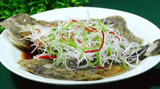 清蒸多宝鱼:Steamed Turbot 多宝鱼是一种体形扁平、体色较深、两眼朝向左侧、形似牙鲆的新鱼种,叫作多宝鱼,多宝鱼虽然是海鲜品种中少有能起四片鱼柳的鱼,但这种食法属嘴刁食客心头之好,在于普通食客而言,是以“清蒸”居多。