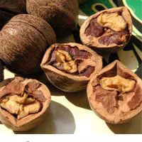 昌化山核桃 浙江 • 杭州 • 临安 昌化山核桃又名小胡桃,已有几千年的栽培历史。皮厚而坚,多肉少仁,壳甚厚,须锤之方破。产于浙皖交界处天目山区临安县昌化、于潜,淳安县临岐、唐村等地。以临安县的昌化出产为最多,品质居上,将其加工成椒盐味,香脆可口。(杭州)