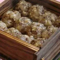 葛粉圆子是石台县风味小吃。其味道香甜,质地柔韧有劲,是选用上等的猪肥膘加入白糖,滚成一层葛粉,裹成球状,上笼蒸至而成。