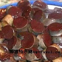 那氏血肠 辽宁 • 盘锦 • 双台子 那氏血肠 由满族那氏家族首创,用肥猪五花硬肋,加白水、调料煮透。将新鲜猪血加水和调料,灌入新猪肠内,扎紧两头煮熟。食用时,将白肉、血肠蘸蒜泥、韭花酱或辣椒油等调料。具有肥而不腻,浓厚醇嫩等特点。