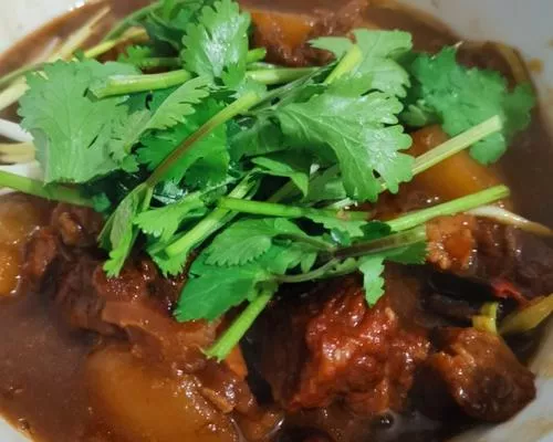 数量配比;一般是1斤牛肉与内脏配2斤米酒,加入草药辣薯8钱,瓜子根5钱,千里骑与鸭掌草各2钱。