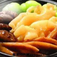 北菇扣鹅掌 山东 • 济南 • 槐荫 北菇扣鹅掌是选用法国鹅掌和长白山野山菇制成,入沸水汆透,放入七成热的油中炸成深红色,再用清汤及调味品兑成汁,浇上,上笼蒸两小时至酥烂。此菜色泽明亮,鲜香醇厚,回味无穷,有养颜美容的功效,是济南的传统特色菜。