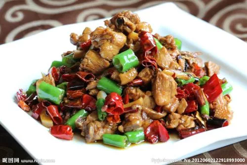 佛岭炒鸡 山东 • 淄博 • 沂源 佛岭炒鸡 以中药配方辅之现代工艺,汤汁酱红,肉色红润,味美醇厚,干香耐嚼,麻辣可口。能促进心脑血管循环,具有补中盖气、生津和胃、提神补虚之作用,对体倦乏力、肺虚久咳、津少口渴、慢性贫血及中老年气血不足者有很好的营养功效。