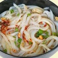 制取淀粉:将绿豆用清水洗净,盛在大缸中浸泡一昼夜使其吸足水分。用磨将浸好的绿豆磨碎,磨时按每100kg绿豆加入400kg清水,磨成稀浆。把磨好的豆浆装入大缸,兑入清浆,充分拌匀,静置。使淀粉明显沉降。几小时后,将上层清水层除去,将中间的毛粉层取出装入第二个缸中,加入清浆,充分搅拌,使淀粉沉淀。静置沉降后,再按上法将毛粉层盛入第三个缸中,加清浆搅拌,沉降。直至毛粉中无淀粉沉降为止。撇除上面清水,取出沉淀的淀粉,用细筛或沙布过滤除去碎渣。过滤时加入清水和清浆反复冲滤。滤出液再装入缸中沉淀。除去上面清水,取出沉淀的湿淀粉装入布袋中沥出水分,即为绿豆淀粉坨。 冲制:取10kg绿豆淀粉,捣成碎面。无疙瘩、颗粒。然后加入温水20kg,明矾40g,搅拌均匀至粘稠状。取沸开水45kg,迅速冲搅,使之均匀熟透。冲熟后迅速倒入一定规格的箱套中,拉平表面,与做豆腐相似,静置,使其冷却成冻。 切块:冲糊成冻后,翻扣在清洁的板框中,按规格用刀切成块即为成品。也可在出售时根据消费者需要分割。制作时应保持箱套平滑,取箱套时可往箱套中加些冷水。一般5kg淀粉可制作凉粉10kg。也可制粉丝、粉皮。