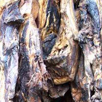 (4)用松柏枝加核桃壳、花生壳、桔子皮等柴草料进行烟熏烘烤,月余后待肉变棕红时即可。