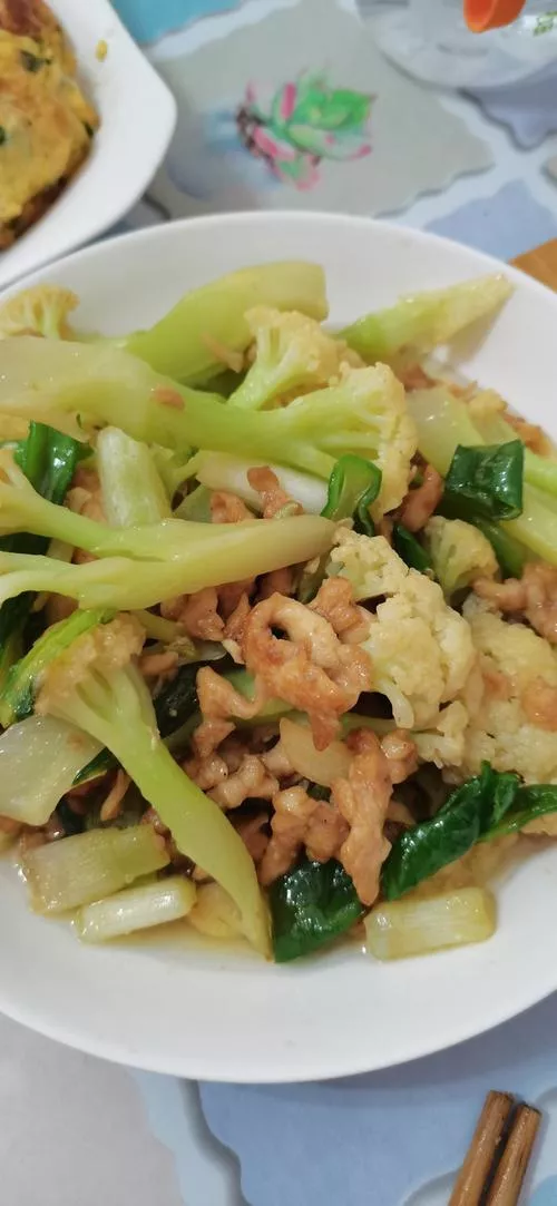 散花小炒 湖北 • 孝感 • 汉川 散花小炒。将牛肉、猪肉、大蒜、红萝卜、青椒切成丝,其料分别为50%、20%、10%、10%、10%,按顺序分五次先后下锅,加五香佐料,干烧成松散状,形成一篷五色花朵。上盘后用几颗红莲点缀,增加光色与风采。