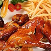 "宫廷烤鸡"乃昔日皇宫御膳。据故宫博物院史学专家介绍,明末清初时期,皇帝要滋补类长寿食物,要求既健身,又不苦。国太师四处寻访多年,在江南一带打听到烤鸡正合御意,便禀报皇上,作为食品。皇帝让国太师试用一年,果然收效明显。于是把这种色、香、味、型极佳的烤鸡定为皇宫御膳,御膳官就以烤鸡作坊主的姓氏定了菜名,叫作"宫廷老唐烤鸡"。建国后,老唐烤鸡曾一度销声匿迹。八十年代,唐氏第九代烤鸡传人向国家科委献出了烤鸡技术,原汉川粮食局局长郑文宣购买了烤鸡秘方和加工技术,并请唐氏传人唐国兴现场传授,使宫廷烤鸡在江汉平原的"鱼米之乡"汉川应市 宫廷烤鸡是一道具有数百年历史的独特菜肴,与一般烧鸡、卤鸡、扒鸡、炖鸡迥然不同。其制作十分考究,要经过选鸡、宰杀、退毛、开膛、清洗、造型、煎煮、烤制八道工序,采用陈年醪汤配以砂仁、白芷、桂元肉等三十多味中药烹煮,再用香油、蜂蜜、白糖精制而成。制成的烤鸡呈桔黄色,色泽晶莹,外焦内嫩,内外酥松,纤维易碎,容易消化,它具有开脾健胃、舒筋活络、生津养血、补气壮阳的功效。从皮到肉到骨鲜味一致,酥松可口,不夹牙,不粘牙,不腻口,味道鲜美,口感细嫩,余香绵长,实为医食双全、老少咸宜的美食佳肴 汉川宫廷烤鸡大酒店自1985年4月开业以来,一直生意兴隆,门庭若市。湖北省粮食局曾在武昌主持召开了烤鸡品尝会,武汉地区各大酒店、宾馆的经理、红案名家品尝后的评价是:名不虚传,味在其中。此后,许多外地大酒店、宾馆亦常到汉川烤鸡店订购烤鸡。( 汉川)