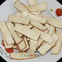 五味香干选用永丰一带的优质大豆,经去壳、浸泡、磨浆、过滤、蒸黄、调配、入模、榨压,再均匀地撒上辣椒粉、辣椒油、香油、酱油、食盐,然后连续烘烤24小时制作而成,辣、甜、咸、香、鲜五味皆备,具有减肥、降酯、消食、健齿养身等功效。