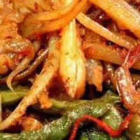鱿鱼肉丝 湖南 • 益阳 • 桃江 鱿鱼肉丝 【菜名】 鱿鱼肉丝 【所属菜系】 湘菜 【特点】 色泽清新,味道鲜美 【原料】 鱿鱼 150克,猪肉丝 100克,柿子椒丝 30克,冬笋丝 30克,盐 2克,味精2克,酱油 3克,料酒 5克,油 30克,水淀粉,香油各适量。 【制作过程】 (1)鱿鱼切丝,用开水焯好,猪肉丝用淀粉上浆。(2)起锅放油烧热,下猪肉丝滑散,控油。(3)锅留底油,下入鱿鱼丝,猪肉丝,加配料,调料翻炒,用水淀粉勾芡,淋明油,香油出锅。