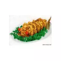 乘火麒麟 湖南 • 长沙 • 开福 是由传统湘菜"糖醋脆皮鱼"发展创新而成,它以3斤左右的鳜鱼或鲤鱼为原料,加工成糖醋脆皮鱼,在加工时注意体形,使之象麒麟,置之盆中,浇以烧酒,上席时点燃,鱼周发出蓝色火焰,宛如麒麟喷火,四座皆惊,象征吉祥如意。此菜构思精巧,造型奇特,而且昧鲜色美,酸辣甜脆,常为接待贵宾的压席菜。 (长沙)
