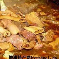 牛杂串最关键的是那煲滚烫浓香的酱汁,里面除了面酱之外,八角、茴香、花椒、陈皮等各种香料是必不可少的。店主将煮熟了的牛肠、牛筋、牛腩之类用剪刀剪成片片小块,然后用长约20公分的铁线串起来,食客象吃火锅那样自己动手放进正煮得翻滚的酱汁里煮来吃。吃时当然别忘了还要蘸上一点辣椒酱,边吃边喘气,这样才够刺激。吃过了牛杂串,还有腌酸菜或腌酸萝卜,用牙签挑上几片过一过口,这样才过瘾。