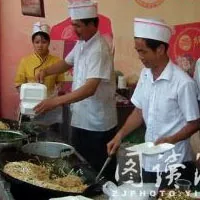 许多食家常用"梅粉胜广河"这句话来赞誉吴川梅菉的街边炒粉。一人一担箩头、一筐米粉、一只火炉、一口铁锅,平日只在市场角落、墟尾街头摆摊开档的"大众化"炒粉。它之所以久享盛名,自有其"奥秘"所在:一、制粉必须选用香软可口的上等白米。二、浸米时间要根据不同季节气温而决定长短。三、炊粉皮粉浆要薄,炉火要旺。四、切粉丝要细。五、炒粉是最关键的一环,先下生油,再下猪油将蒜子爆香,即落粉猛火急炒,继而下齐酱油、味精、白糖等适量配料拌炒熟透,再慢火烘粉至黄色,最后撒下葱花或芫荽,即可上碟食用。( 吴川)