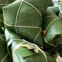 雷州大粽 广东 • 湛江 • 雷州 雷州大粽历史悠久,曾有“岭南佳品”之称。做法是以糯米为皮,莲子、猪肉、红枣、香菇等作馅,用海南大粽叶包裹,蒸4~5个小时即熟。雷州人吃大粽常与牛肉汤一起吃,称之“牛肉大粽” ( 湛江)