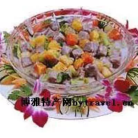 选用新鲜番薯、荔芋和芥菜调烹而成,口感清爽、新鲜,解腻开胃,是一绿色健康食品。