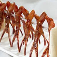 美味鸭舌 浙江 • 温州 鸭舌是温州传统特产,可作为宴席中的冷菜,亦可作为小吃零食。一般将新鲜鸭舌添加调料经过卤、蒸等工序精致而成。入口细嚼,略带韧性,满口留香。 因温州方言中“舌”与做生意折本的“折”谐音,故买卖人认为不吉利,所以温州人一般就在方言中把“鸭舌”叫做“鸭赚”,以讨口彩。 温州知名鸭舌口牌有:初旭鸭舌、修文鸭舌、腾桥鸭舌、爽康鸭舌、噼里啪啦鸭舌等著多知名品牌。信息来源:温州市文化广电旅游局