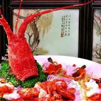 新龙皇夜宴 广东 • 佛山 • 禅城 单听菜名已感觉到它的气派,气势十足的龙虾装饰,食材中当然少不了龙虾的成份,这道佳肴可让人一次过尝到5种不同口味的佳肴,吃出满足感。从这佳肴中,可看见其中有橙子盛载着的龙虾沙律,口感清新;鸟巢海鲜石榴是的脆皮包着蔬菜丝,另有一番新口味;鱼形虾类似燕菜,用虾子组成鱼形,冷冻的口味。