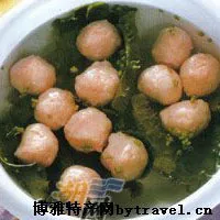 上汤虾丸 广东 • 汕头 • 金平 上汤虾丸 用料: 鲜虾1000克,鸭蛋2个,精盐20克,味精10克,上汤500克。 制法: (1)把鲜虾去掉头、壳,挑去虾肠,用水洗净,然后用纱布包上虾肉挤干水分后打成虾胶,再加入鸭蛋白、精盐、味精等配料等配料拌匀后,用手挤成丸状,放进竹盘上入蒸笼炊3分钟熟,将熟虾丸盛在餐盅里,灌入沸上汤,调好汤的咸淡即成。 特点: 色泽美观,鲜嫩爽口。