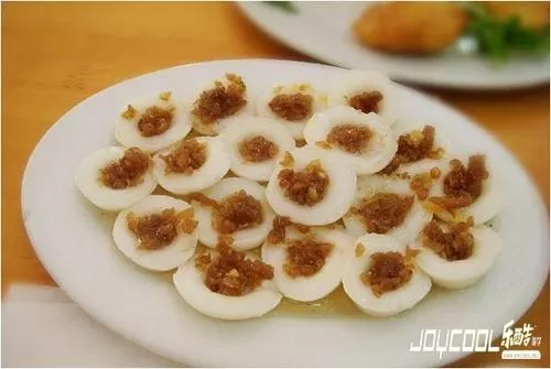 水粿 广东 • 潮州 • 湘桥 潮汕小吃,也叫粿仔。做法是先将米研磨,再将米浆倒入摆好的小碗杯里,然後再放到锅炉上猛火蒸熟,熟之后待冷却,取出蒸熟的米浆就会呈碗状。 再蒸热,一个一个摆好放在盘子里,然后放上菜脯粒,浇上甜酱,就可以吃啦。