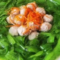 凉瓜鱼羊鲜 广西 • 南宁 • 上林 凉瓜鱼羊鲜 精选新鲜凉瓜,红河鱼肉,黑山羊肉制作,把鱼肉,羊肉分别剁成泥状,再搅拌出胶质,码味后,混合捏成丸煮熟,凉瓜飞水后摆盘,倒入肉丸即可。此菜汤汁鲜香,肉质鲜嫩。