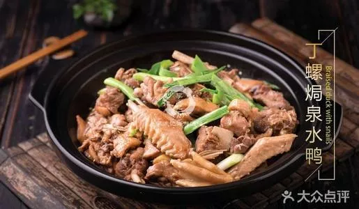 泉水鸭是桂林地区独创的菜点,采用本地土鸭配以十五种中草药经过特殊的工艺制作,食之不但口味清香,且有强身健体疗效。( 桂林)