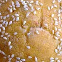 4.烘焙:用急火,炉温350℃左右。进炉时饼面在下,烘焙1分钟左右,翻面,再烘焙约1分钟,芝麻炸裂有声时,即可出炉。