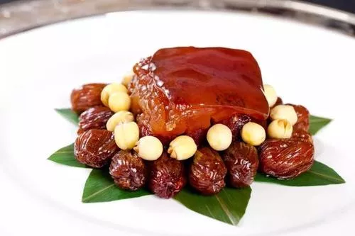 用冰糖水反复浸蒸,味甜中带咸,酥糯浓香,衬以鲜莲,缀上青梅、樱桃、桂花等,色泽美观,汤汁稠浓,滋味鲜美,是1956年浙江省认定的36个杭州名菜之一。