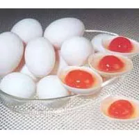 咸鸭蛋,蛋壳呈青色,外观圆润光滑,又叫“青果”。咸鸭蛋在我国历史悠久,深受老百姓喜爱,在市场上也备受青睐。该产品的特点是蛋心为红色、营养丰富。它富含脂肪、蛋白质以及人体所需的各种氨基酸,还含有钙、磷、铁等多种矿物质和人体必需的各种微量元素及维生素,而且容易被人体所吸收,优质的咸鸭蛋咸度适中、味道鲜美,老少皆宜。 与普通鸭蛋相比,咸鸭蛋中部分蛋白质被分解为氨基酸,由于盐腌,使蛋内盐分增加,蛋内无机盐也随之略增。生蛋黄中的脂肪由于与蛋白质结合在一起,看不出含有油脂,腌制时间久了,蛋白质会变性,并与脂肪分离,脂肪聚集在一起就成了蛋黄油,蛋黄中带有红黄色卵黄素及胡萝卜素,溶于蛋黄油呈红黄色,增加咸蛋的感官性状,咸鸭蛋出油则是腌好的标志。此外,咸鸭蛋中钙质、铁质等无机盐含量丰富,含钙量、含铁量比鸡蛋、鲜鸭蛋都高,因此是夏日补充钙、铁的好食物。