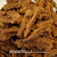 毛牛肉俗称“牛肉粑儿”,明清以来均有制作,历来为民间所爱,可并瓜子糖果果碟,又可置酒菜菜盘。1990年,在首届四川省名特风味小吃评审会上获名特小吃奖。 该品选用冬瓜牛肉切条,生条寸多长,先将血水漂净,经煮、卤、炒而成。制作时火候颇为讲究,煮至条肉断血即可,卤至条肉表面纤维收缩为度,炒作时至条肉表层疏松发毛,并作最后一次调味,然后起锅晾冷即可食用。煮卤火候不到则不发毛,过火则烂碎。此品以色泽棕黄,松软化渣 ,咸淡适度,醇香味长而闻名。即可佐酒,又可零食,携带方便,保质期长,实为旅游佳品。 自贡毛牛肉是牛肉食品中的一种创造,它既保有牛肉干的精髓,又具有牛肉松的酥软,将二者的风味交融起来,是其口感大众化,加之成品保持牛肉本位,亦能被食牛肉地区的人们接受。